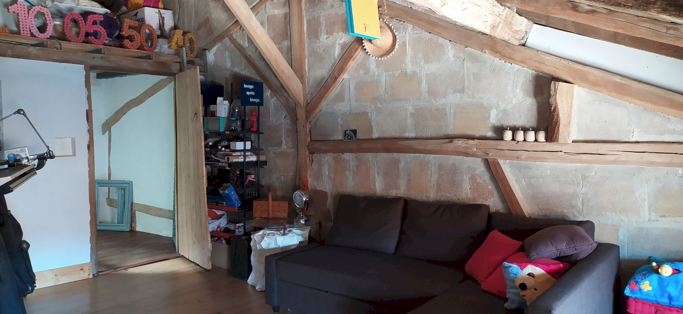 • Au second : une chambre de 23m² avec charpente apparente et un grenier.