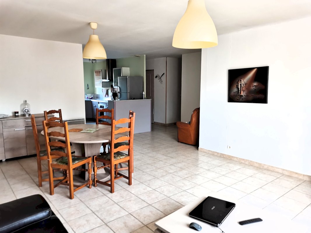 *Salon - Salle à manger de 35 m2 ouvert sur cuisine entièrement aménagée et équipée donnant accès par une porte fenêtre à une terrasse de 15m2 et au jardin sans vis à vis à l'arrière