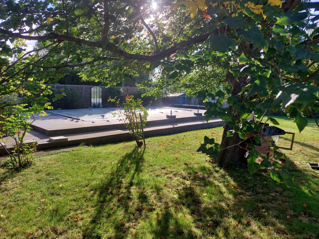 Il ne faut pas oublier, la piscine au sel (4m sur 8m) chauffée par pompe à chaleur, avec sa plage en bois exotique (cumaru) et le tilleul à l'ombre duquel il fait bon se reposer.