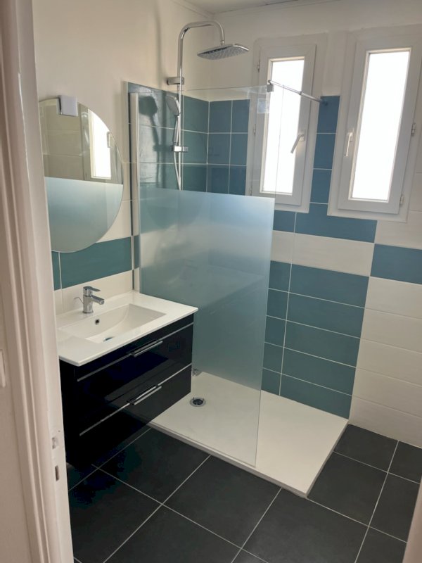L'intérieur se compose d'une grande cuisine aménagée, avec un accès direct sur une terrasse ensoleillée, idéale pour les repas en plein air et les soirées entre amis. Le salon et la salle à manger, baignés de lumière, s'ouvrent également sur la terrasse, créant ainsi un espace de vie harmonieux.