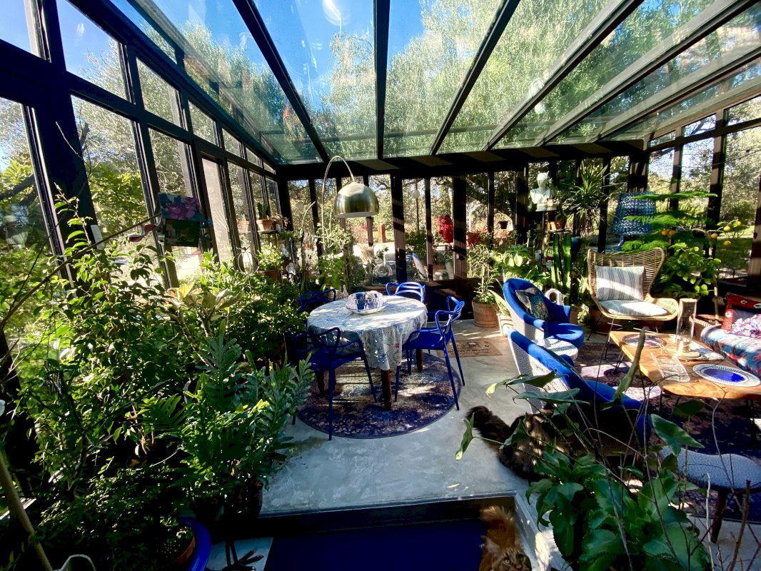 Un très beau jardin d’hiver à l’ouest donnant sur un jardin aménagé de 2400 m2, d’une piscine et d’une cuisine d’été au sud complète ce mas.