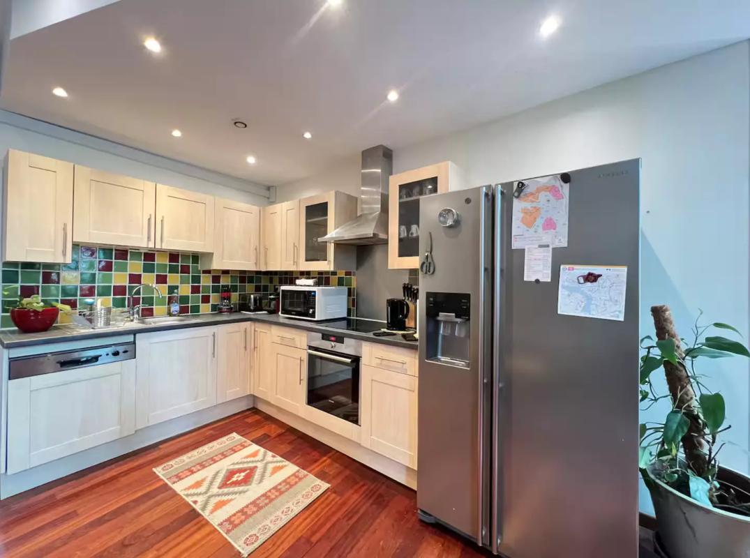 Séjour/Cuisine - 25.74 m² - Cuisine aménagée et entièrement équipée avec notamment four, lave-vaisselle, plaque vitrocéramique, hotte et de nombreux rangements, unité de climatisation réversible.
