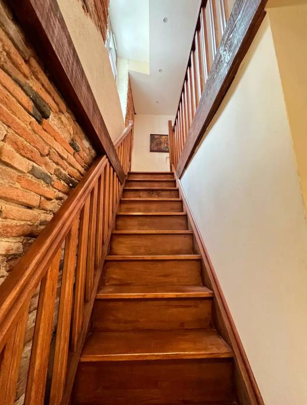 Entrée - 1.27 m² - Sol parquet en bois en bon état, mur briques, poutre apparente avec une hauteur sous plafond de 2.80, double vitrage bois, interphone.