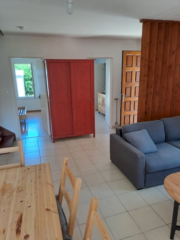 Rez-de-chaussée : salon/salle à manger lumineux, cuisine séparée et bien équipée, plus une chambre spacieuse.