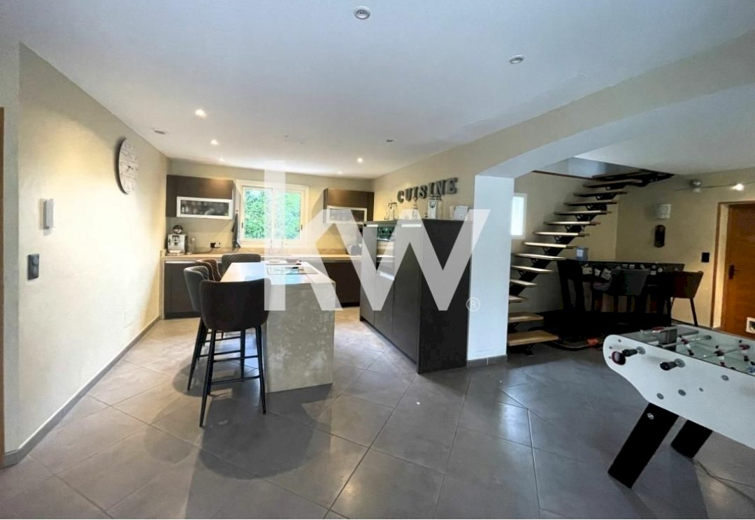 Profitez pleinement des beaux jours grâce à une grande terrasse, un jardin clos, une piscine privée parfaitement intégrée à l'espace extérieur avec bar et cuisine d'été et terrain de pétanque ainsi qu'un garage et cinq places de stationnement.