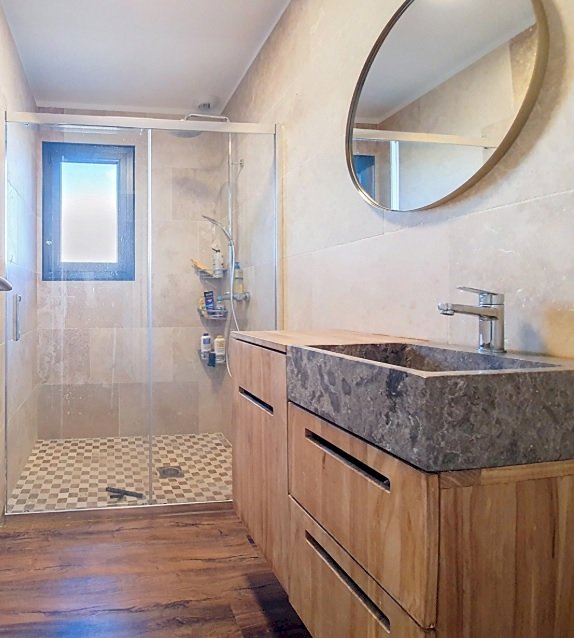 Villa en plain pied total composée de 4 chambres, dont une suite parentale et séjour/cuisine US. Construction de qualité. Charpente métallique. Huisserie alu et moustiquaires sur toutes les fenêtres. Visiophone. Chauffage / climatisation pompe à chaleur / gainable sous toiture. Cuisine équipée de qualité. Garage + mezzanine et 2 places de parking devant le garage.