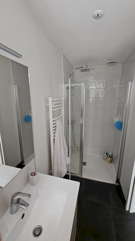 - Une petite salle de bain fonctionnelle pour toute la famille avec sa douche italienne,