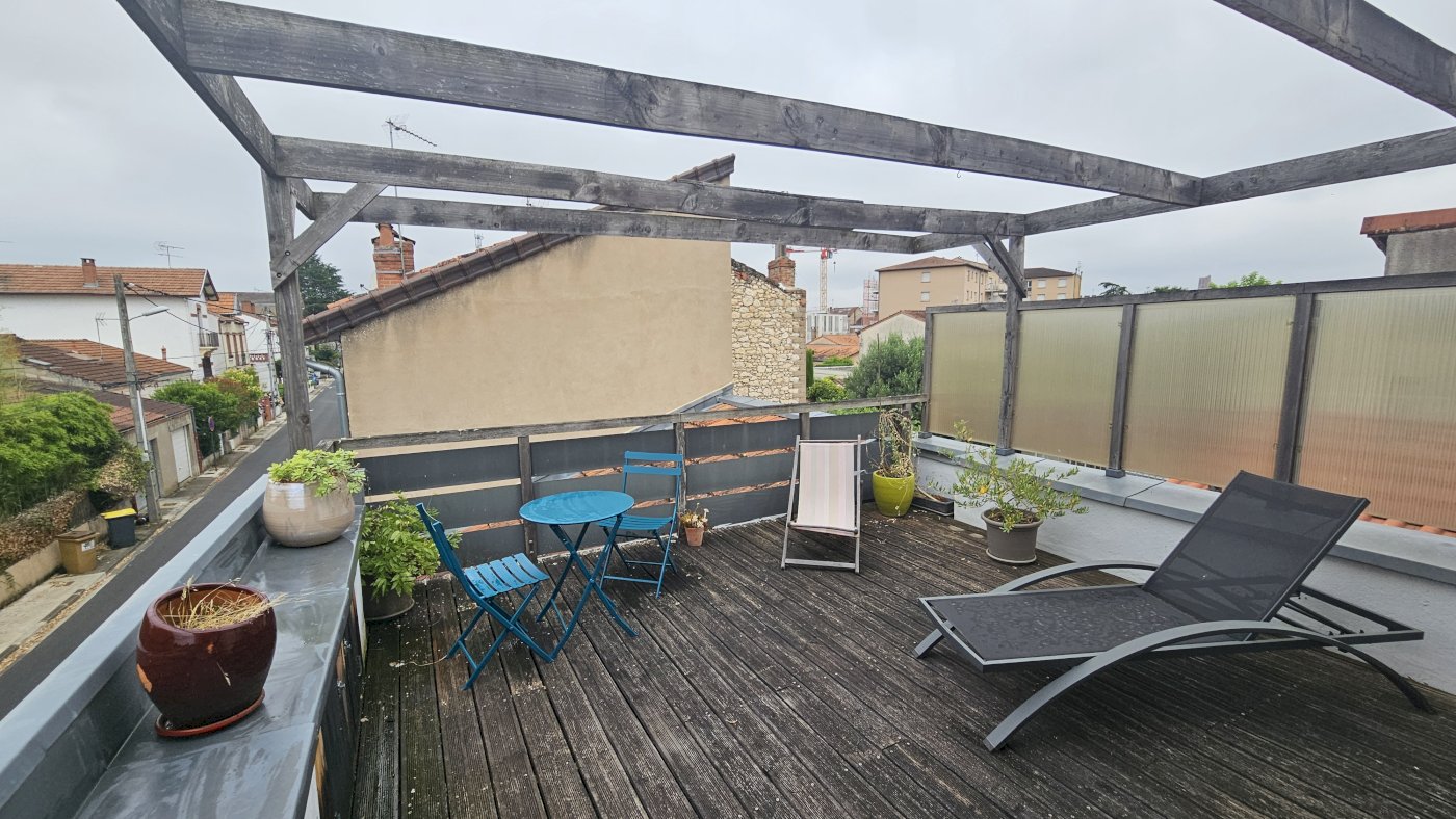 La terrasse de 15 m² permet de profiter d'un espace extérieur agréable le temps d'un apéro ou un bon repas en famille.