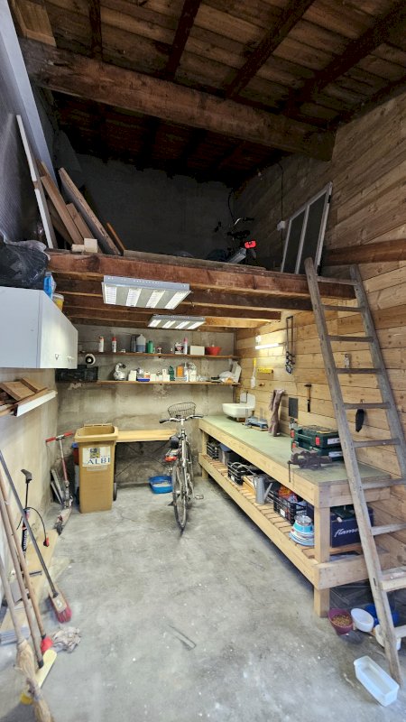 - Un garage avec sa mezzanine avec la possibilité de garer une voiture ou d'installer un établi pour le bricolage.