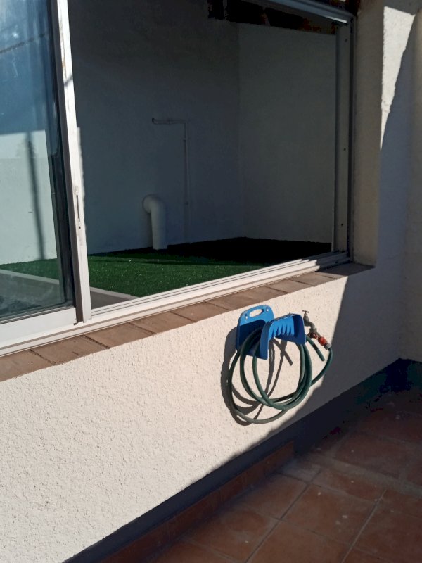 La maison très claire sur 2 niveaux avec un balcon et en haut une terrasse 20m² sans vis a vis exposée au sud, barbecue et point d'eau.