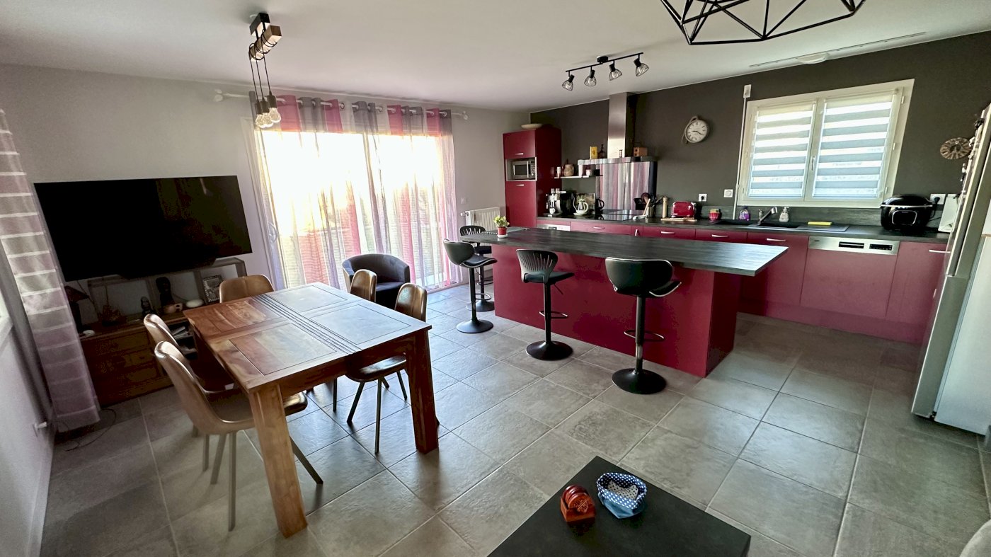 Maison de 2018 (sous garantie décennale) en RT 2012 classée A en performance énergétique (diagnostic du 6 février 2025) de 114 m² sur un terrain entièrement clos de 742 m², elle comprend :