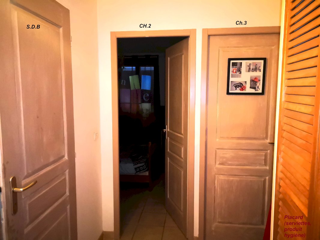 *Doté de 3 chambres spacieuses avec placards portes coulissantes équipés en penderie et étagères