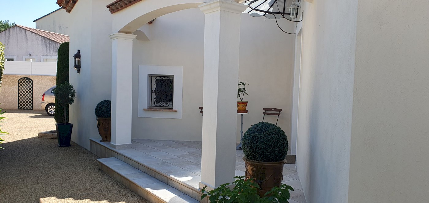 Villa contemporaine de qualité située en zone non inondable. Village tranquille de mille habitants, possédant une épicerie, un pôle santé, une école maternelle, un ramassage scolaire pour le collège et lycée. À 5mn de l'autoroute A9, 10mn de Sommieres,30mn de Montpellier,30mn de Nimes,25mn de la Grande Motte.161 m2 habitable.entierement climatisée. clim réversible alimentée par deux groupes "Daikin". piscine en dur,cuisine d'été avec douche et WC.Chalet de jardin. Garage de 36m2 complètement carrelé et isolé. Alimentation en eau de ville, eau du Bas Rhône,et forage. Surfage totale avec véranda débarras et terrasses 215m2.details supplémentaire s sur demande.