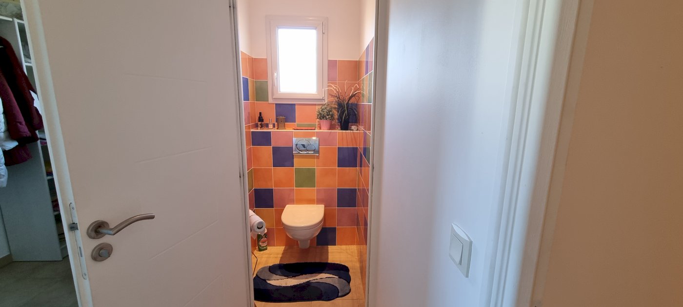 Aussi d'un deuxième WC indépendant et d'un bureau avec accès directement au double garage avec porte de garage électrique et qui est entièrement isolé et peint.