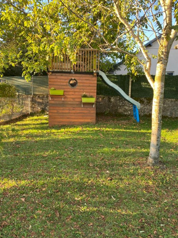 Le terrain d'une superficie de 1200 m2 est clôturé, fermé et arboré avec goût .