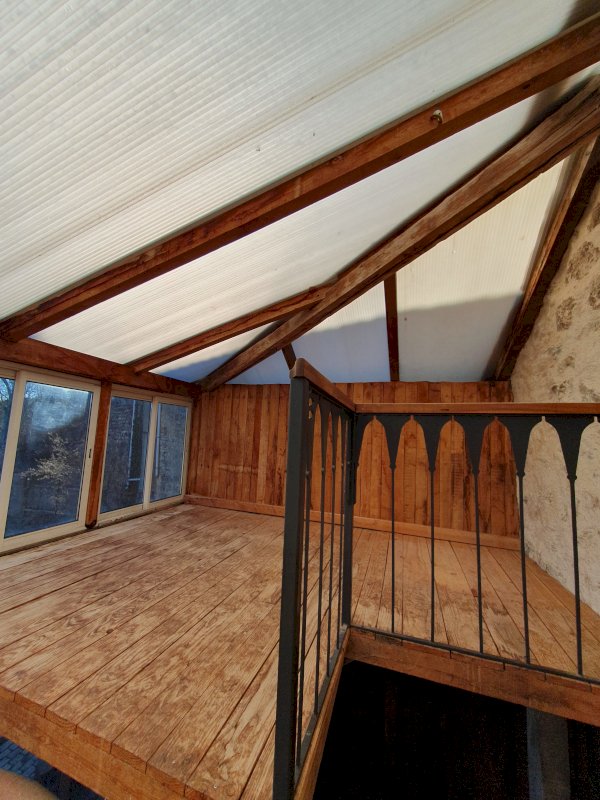 Chauffée avec un poêle (12 stères/ hiver) et solaire thermique en toiture (4 m²) pour l’eau chaude sanitaire.