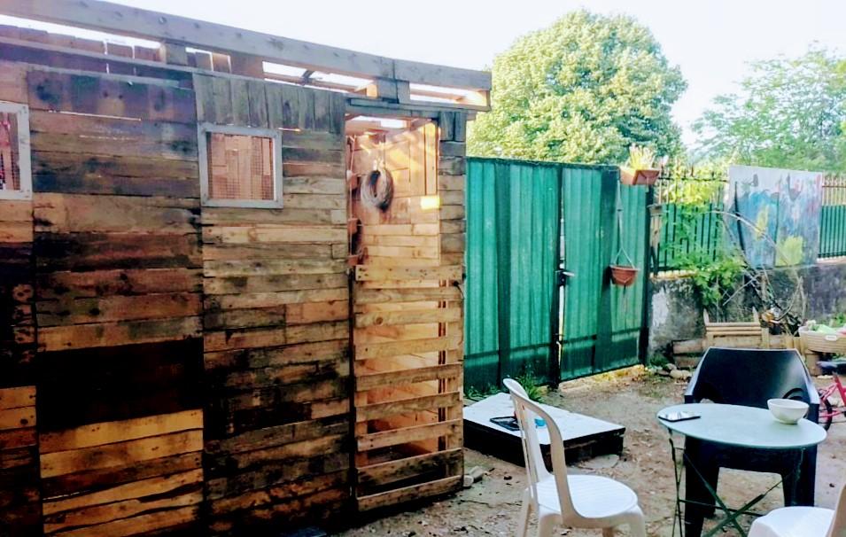 Jardin entièrement clos 200 m² avec pieds de vignes, rosiers, lavande, sauge, poulailler, abri de jardin, barbecue.