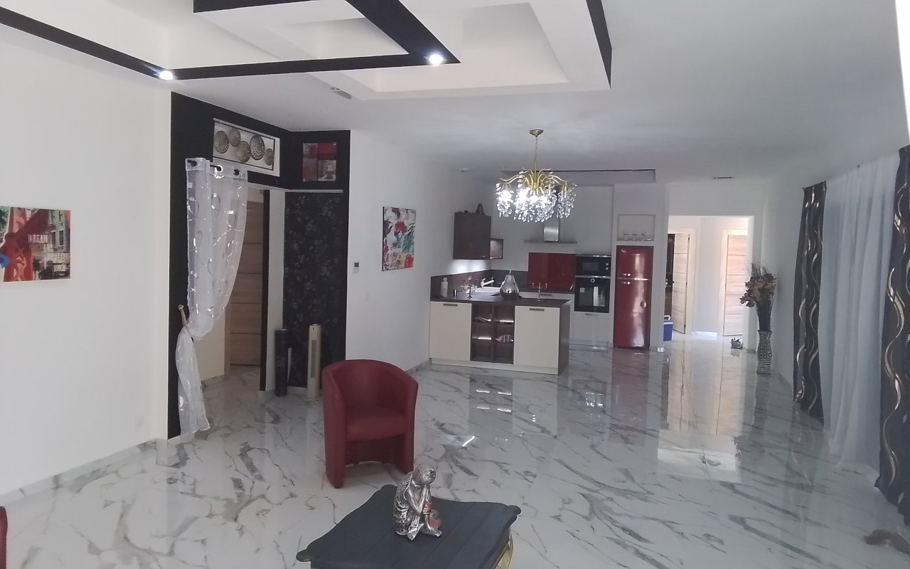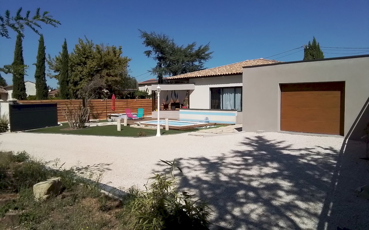 ,ses volumes avec de belles hauteurs sous plafond , et proposant une belle salle de vie lumineuse de 60m²avec ses grandes baies,vitrées , sa cuisine ouverte toute equipees,ouvrant sur 2 terrasses dont une couverte ,situe plein sud , ouvrant sur une piscine acceuillante, 3 chambres dont une parentale douche dressing (21.32,, 14.71 et 12.50) 2wc, une buanderie qui communique avec un garage carrele,, des frais de notaire reduits 2.65% au lieu 7.85% ,, chauffage pompe a chaleur, clim reversible, place de parking terrain 680m² pour tous renseignements vous pouvez nous contactez semaine et weekend