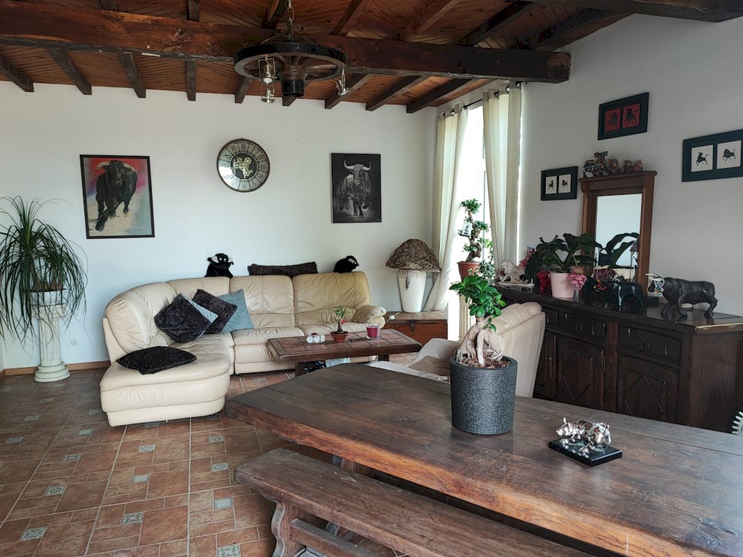 Maison individuelle, en pierre apparentes, possédant au rez-de-chaussée une cuisine équipée, un séjour, une salle de bain, une chambre et un débarras. L'étage est composée de 4 chambres, dont une possédant sa propre salle d'eau et une salle de bains. Un studio, attenant à la maison fait également partie de cette charmante demeure et il se compose d'une kitchenette équipée, d'une salle d'eau et d'une chambre en mezzanine. L'extérieur possédant granges, salle de sport, piscine, jacuzzi, et grand jardin saura vous ravir et vous donner une sensation de vacances tout au long de l'année! N'hésitez pas à nous contacter pour plus de renseignements.