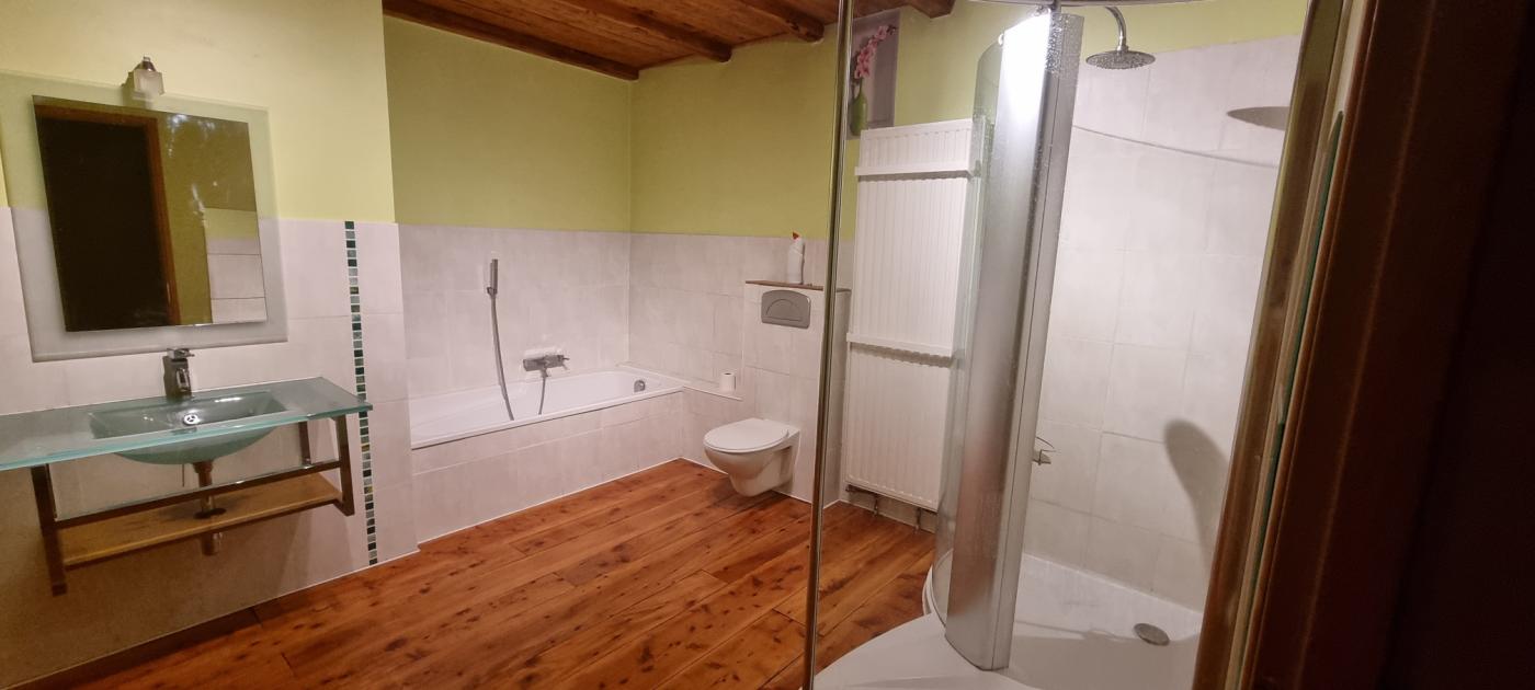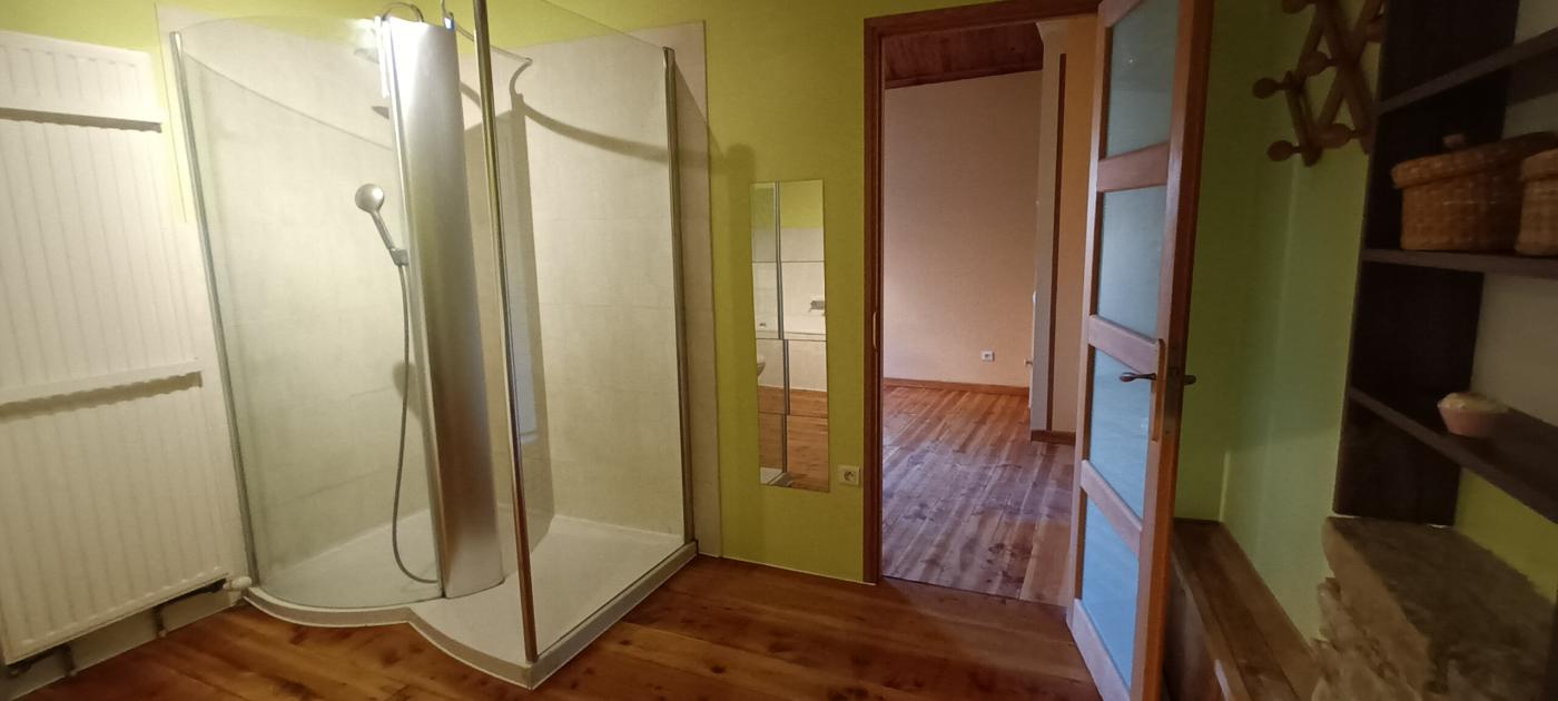 Le 1er étage est composé de 2 belles pièces (19 et 13 m2), une salle de bain (8m2), un wc et un balcon.