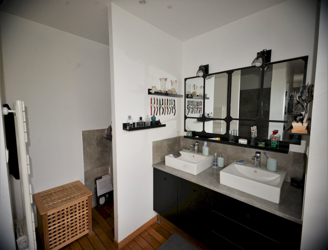- Une pièce avec velux de 12,50 m² (30 m² utile) pouvant être utilisée en bureau, chambre ou salle de jeu. Cette pièce comprend une arrivée d'eau C/F et une évacuation permettant de créer une salle d'eau et/ou un WC supplémentaire.