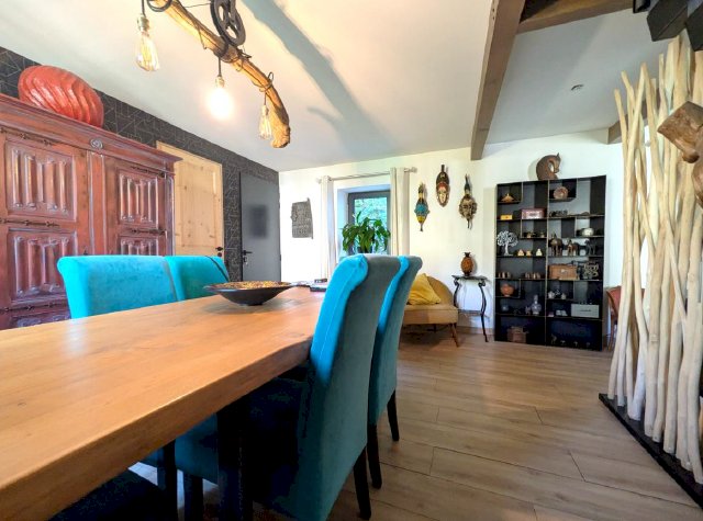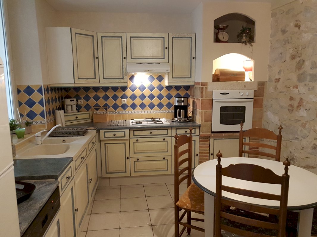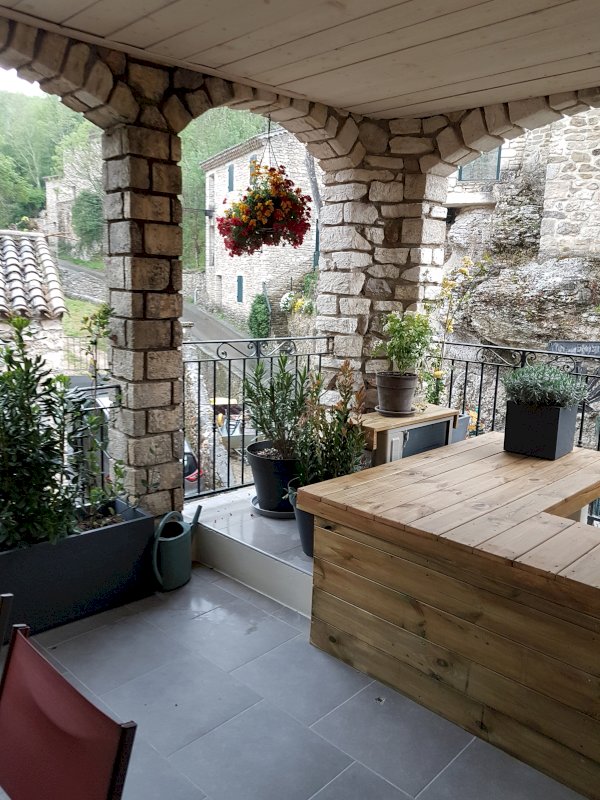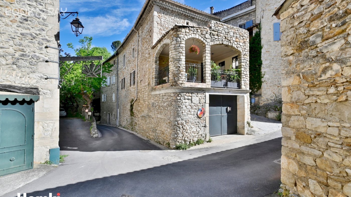 Maison en pierres apparentes, dans un authentique village médiéval en ruche, accroché à sa colline. La maison comprend 2 appartements séparés. Un appartement de75m2 entièrement meublé, cuisine équipée, salon/séjour clim réversible +cheminée avec insert, 1 chambre/dressing et placards, 1salle d'eau et wc séparé. Terrasse couverte plein sud. Menuiserie double vitrage. Actuellement en location meublée. Revenu annuel 7.200€. Un deuxième appartement de 75m2 accès indépendant par la calade. Entièrement rénové en 2023. Salon/séjour, poêle à bois, cuisine équipée, terrasse plein sud, salle d'eau, wc séparé, dressing. Menuiserie en triple vitrage, isolation des murs renforcée. 2 chambres en duplex et wc. Vélux. Grenier en sous pente. Pompe à chaleur Air/Eau. En rdc une cave voutée de 75m2 servant d'atelier ou de garage, comprenant une cuve de récupération d'eau de pluie de 8m3 avec pompe/surpresseur. Vente entre particuliers