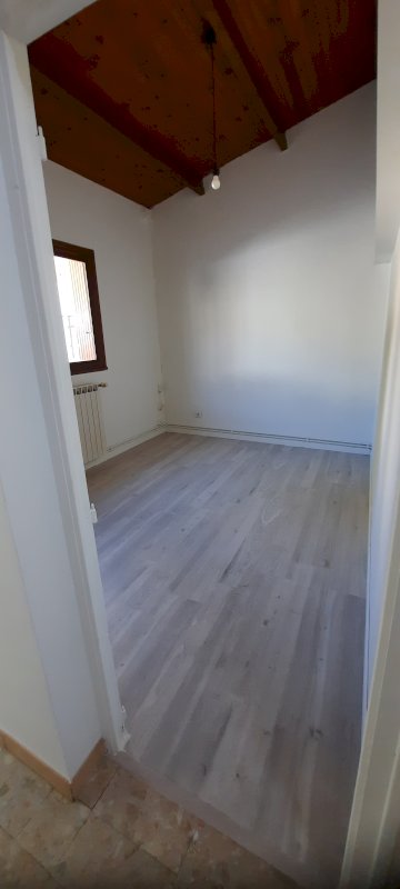 L'entrée donne directement sur une grande pièce séjour / cuisine d'environ 25m² : c'est la pièce de vie, très lumineuse grâce à un grand vélux et une fenêtre.