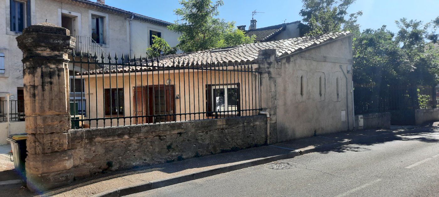 Maison individuelle de plein pied avec une cour et une place de parking.