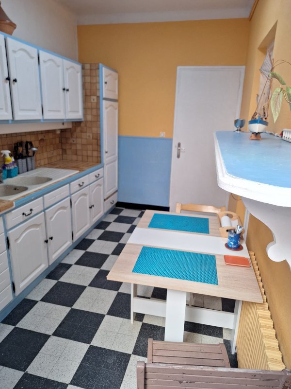 - Une cuisine donnant sur la cour intérieure par une porte fenêtre