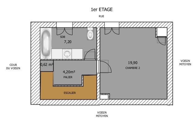 • 2eme étage : 32 m² à réaménager, réparti comme suit :