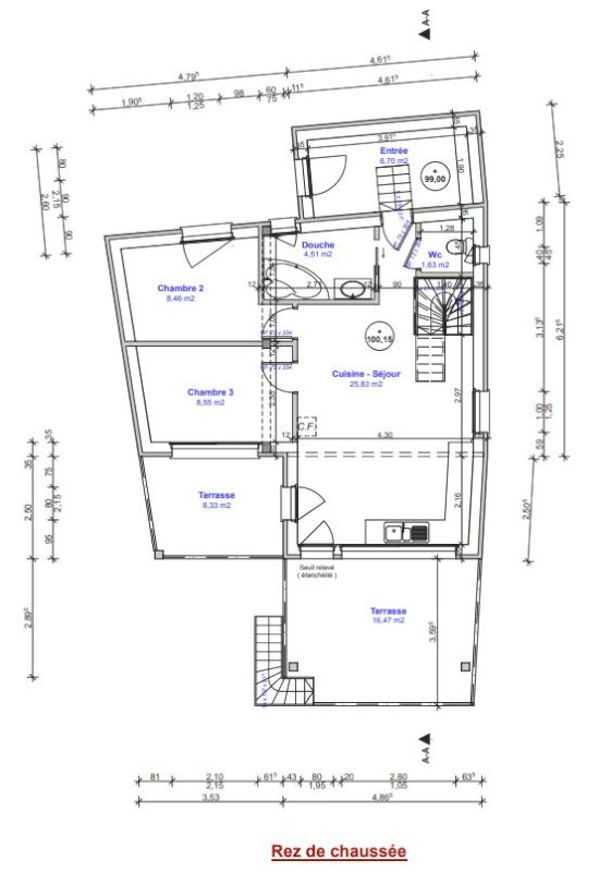 Possible de relier RDC et R+1 en débloquant la cage-escalier.