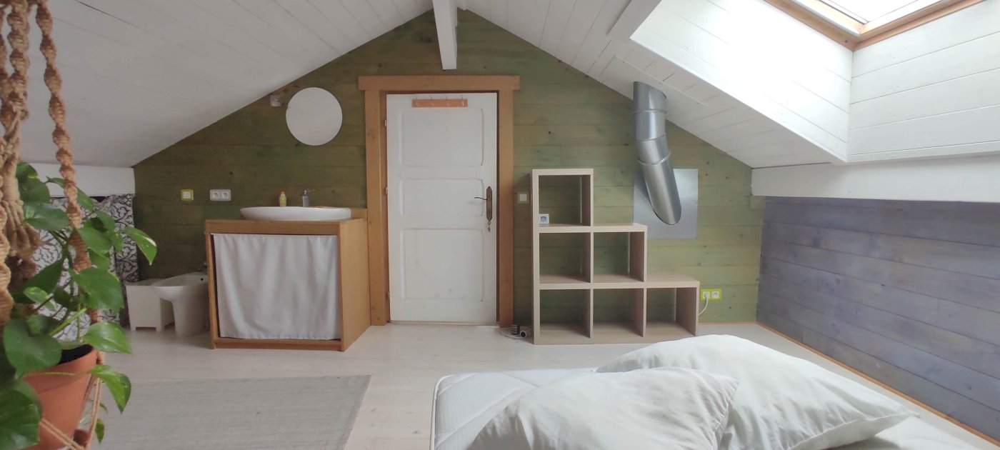 R+1 Appartement actuellement en colocation, mais libre dans les mois à venir. 78 m2 Carrez avec une belle grande pièce de vie, jolie hauteur de plafond 3,5m, 2 chambres avec mezzanines, SDB, toilettes et un R+2 sous combles avec encore deux pièces supplémentaires pour chambre + salon, bureau, pièce de jeux ou...
