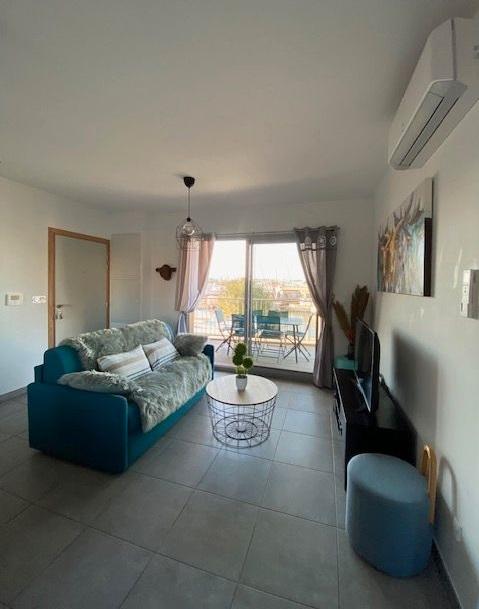 Appartement T3 récent au 1re étage d'une petite résidence sécurisée situé sur la rive gauche du Grau du Roi offrant belle pièce de vie cuisine ouverte entièrement équipée, 2 chambres, salle de bain et wc indépendant.