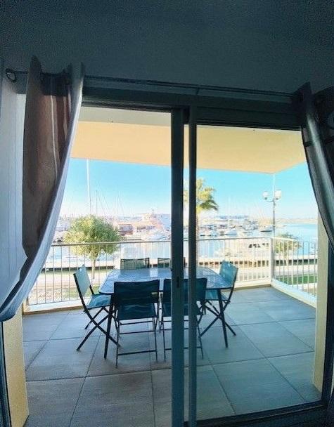 Balcon terrasse vue port de pêche.