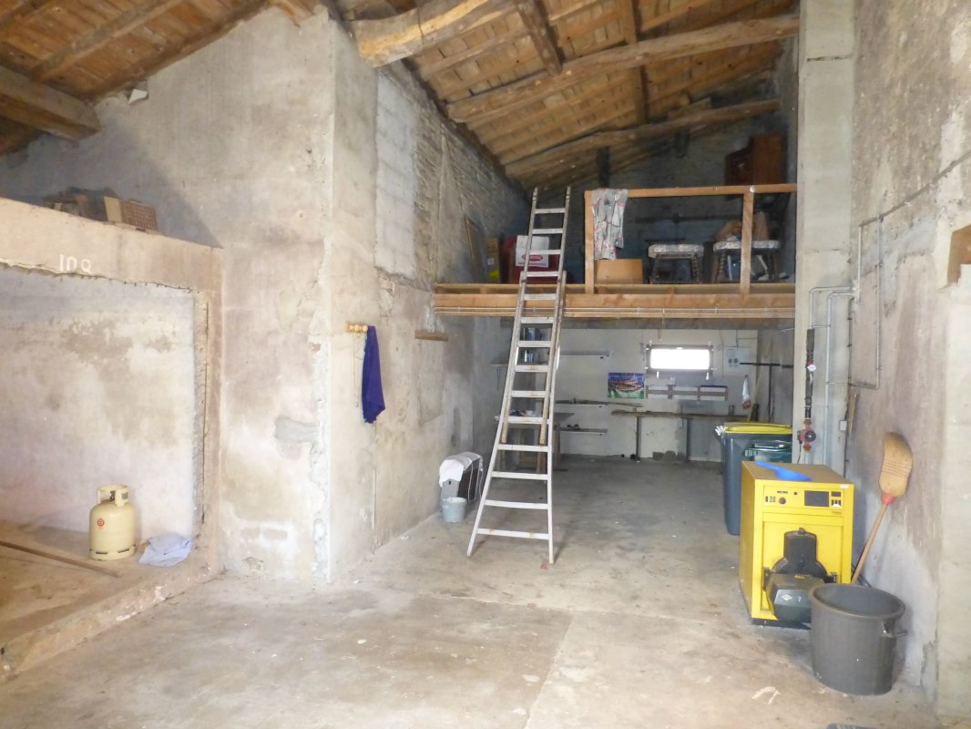 • Au rez de chaussé : grande cuisine avec son mobilier intégré en massif ainsi que l'électroménager (four ,lave vaisselle ,plaques de cuisson; ainsi qu'une cheminée avsc insert), un salon et derrière une grande buanderie avec wc et salle d'eau (douche recente à l'italienne) communiquant avec le cellier un immense garage avec mezzanie servant de grenier; tout a l'arrière un autre garage fermé d'environ 30 m².