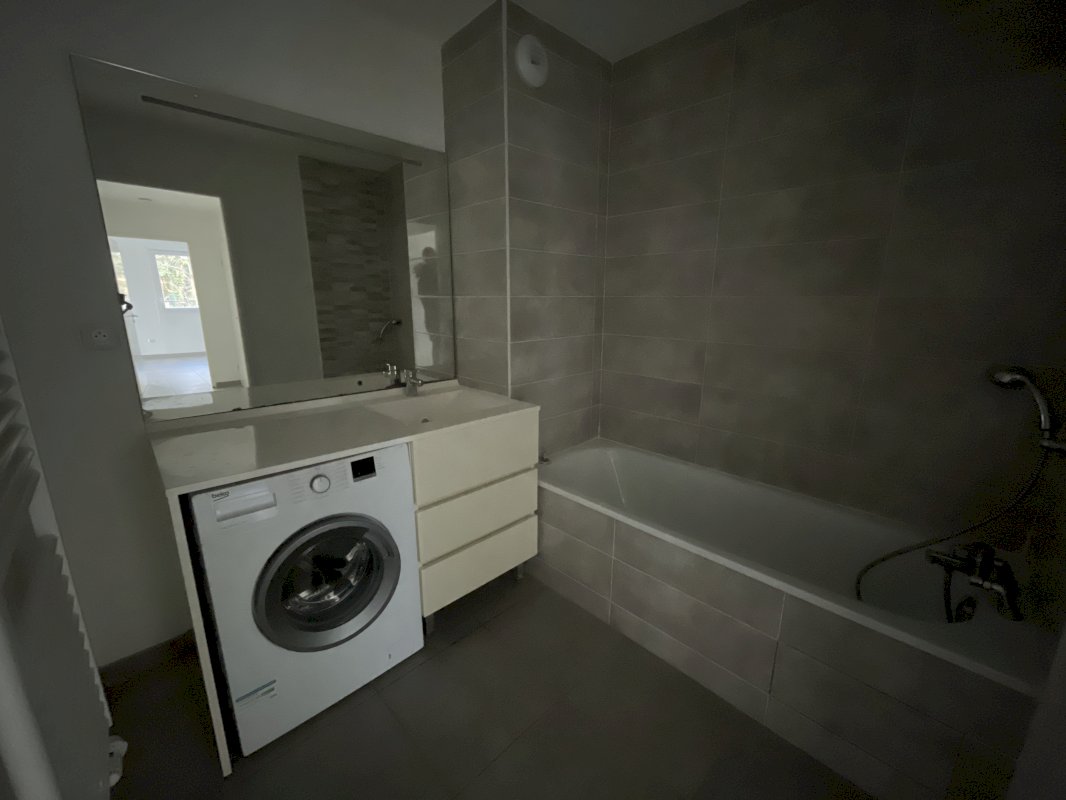 Situé au rez-de-chaussée, dans la résidence du Parc Gascogne à Mondonville, cet appartement se compose d'une entrée comportant un espace de rangement de 2m2 à aménager pour créer un espace buanderie. Vous arriverez ensuite sur un séjour avec cuisine ouverte le tout pour 26m2. Le séjour s’ouvre sur la terrasse (14m2 avec lattes en teck au sol) avec une belle baie vitrée. Espace de vie lumineux. Côté nuit, vous accéderez à 2 chambres : 13m2 et 11.8m2 équipées de placards muraux (porte coulissante 2 vantaux), ainsi qu’une salle de bain (baignoire – grand miroir, meuble vasque simple et sèche serviettes) avec WC séparés. 2 places de parking : 1 aérienne et 1 en sous sol, viennent compléter ce bien. Un appartement qui offre de belles opportunités d’aménagement et qui laissera libre court à vos envies d’agencement intérieur.