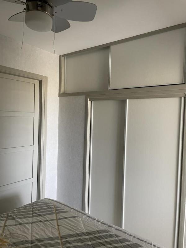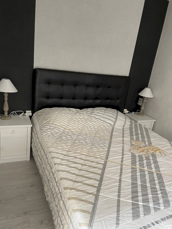- chambre séparée, ventilateur 5 pales, porte coulissante, lit, 160x200 avec literie, placard équipé étagères et penderie.