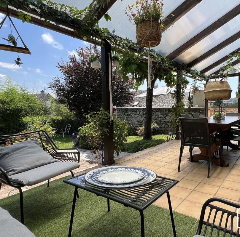 La pièce de vie de 54 m² possède un accès de plain-pied sur une terrasse couverte et une seconde terrasse équipée d’un barbecue, offrant une vue imprenable sur la cathédrale de Rodez.