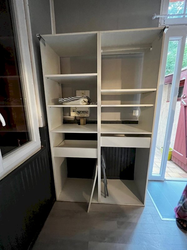 Studio meublé de 17m2 en rez de jardin avec lit en mezzanine, kitchenette et rangements