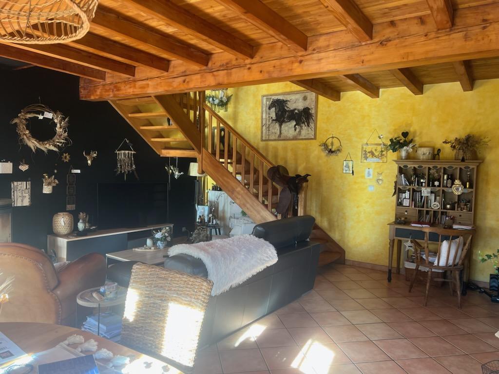 Rez de chaussé : cuisine équipée ouverte sur le salon salle à manger.