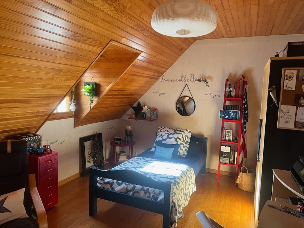 Étage : une grande chambre exposée Sud/Est avec balcon et dressing, salle de bain, deux chambres et un wc.