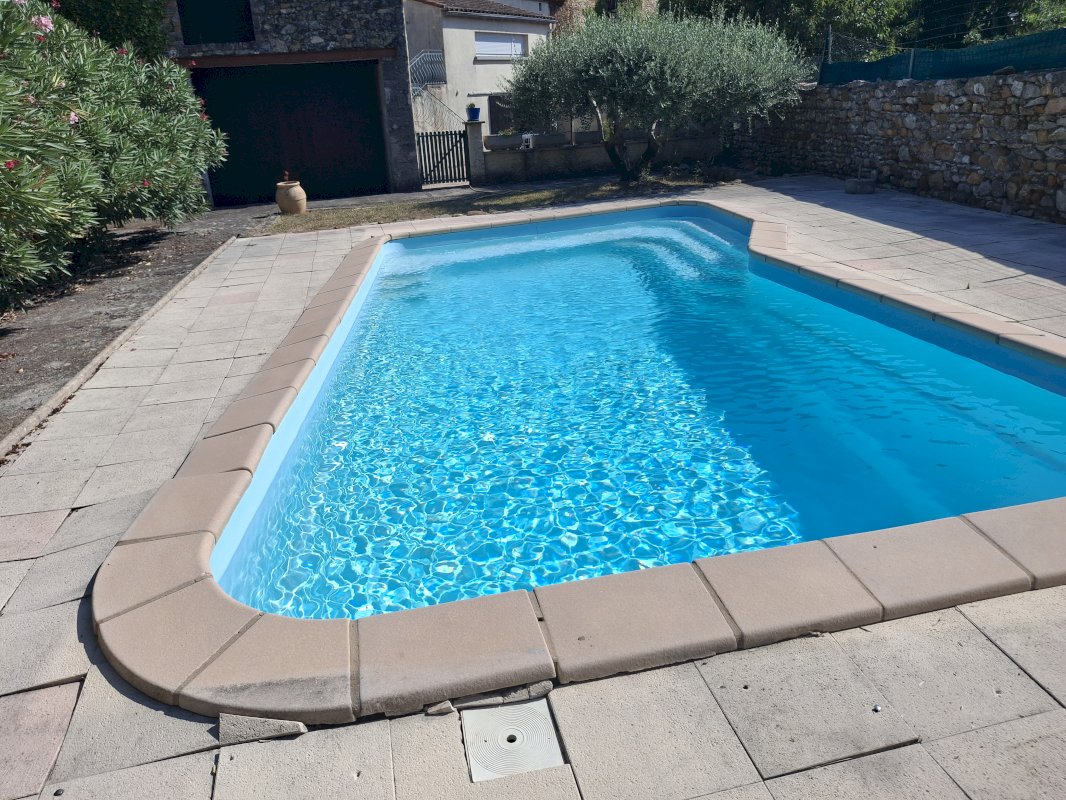 Résidence secondaire avec terrain de 700 m², piscine au sel, nombreuses dépendances : caves, atelier, hangar de 55m², cuisine d'été.