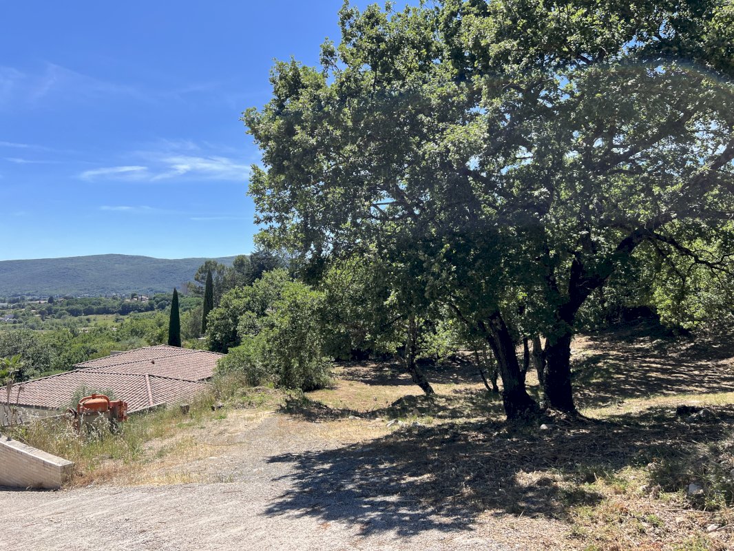 Quartier résidentiel très calme à 1500 m de Ganges – Terrains arborés (chênes et oliviers) avec magnifique point de vue sur Laroque. Site touristique en bordure des Cévennes et de l’Hérault.