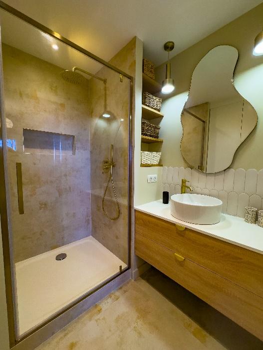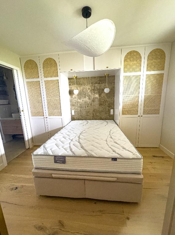 L'appartement se compose d’une grande chambre, lit en 140, avec sa salle de bain attenante et d’un canapé lit confort en 140 dans le salon.