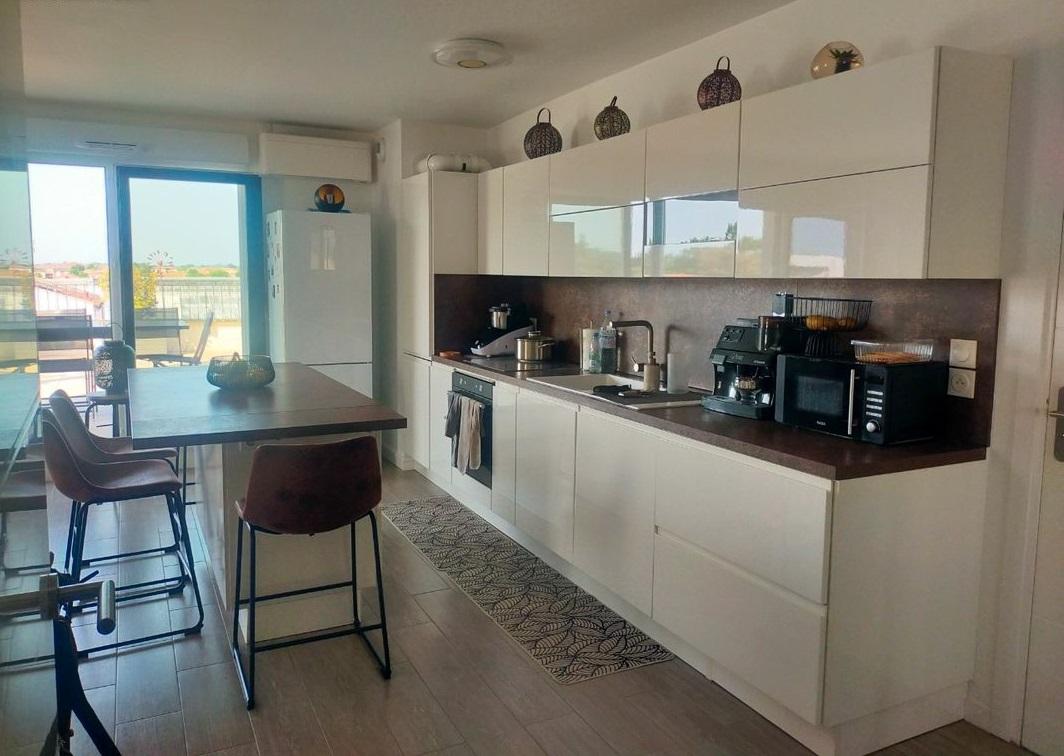 Bel appartement T3 composé d'une pièce de vie très lumineuse avec cuisine intégrée avec rangements et électro ménager.