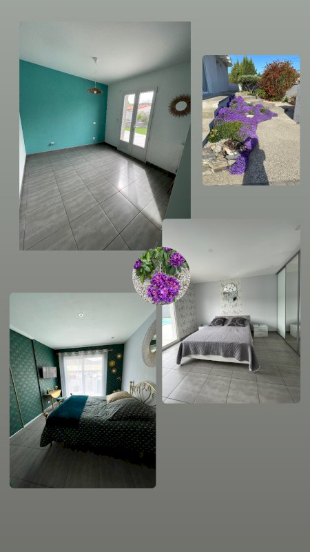 La maison comprend une cuisine qui a 6 ans de 22 m², aménagée, équipée, d'un four, frigo, micro-ondes four, plaque électrique 3 feux, hotte aspirante, îlot central, cuisine très fonctionnelle, une baie gualandage de 2,40. Salon de 30 m² avec placard de 1,20 avec portes coulissantes en verre rouge, 1 chambre 16,50 m², 1 chambre de 13 m² les 2 chambres avec grand placards, 1 chambre de 12 m². Une salle de bain de 9 m² avec baignoire, d'une douche spacieuse avec porte verre antie calcaire, d'un meuble vasque suspendu et de 2 meubles colonnes, d'un radiateur électrique colonne sèche serviette et soufflant. Un cellier. Un wc suspendu avec fenêtre. Un garage de 26 m² avec volet électrique de 3 m avec porte de service, grenier accessible par un escalier escamotable. Aspirateur centralisé avec 3 prises murales. Les menuiseries sont en aluminium et double vitrages. Un portail en aluminium électrique avec télécommande, un portillon en aluminium avec interphone. Une porte d'entrée en aluminium. Accés par le garage d'un vide sanitaire de 0,60. Les portes intérieurs en bois avec joints phoniques. La pièce à vivre a une climatisation réversible ainsi que dans les 2 plus grandes chambres, dans la 3 ieme chambre un radiateur électrique.