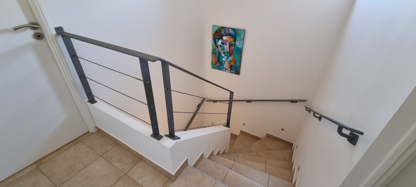 Aussi d'un deuxième WC indépendant et d'un bureau avec accès directement au double garage avec porte de garage électrique et qui est entièrement isolé et peint.