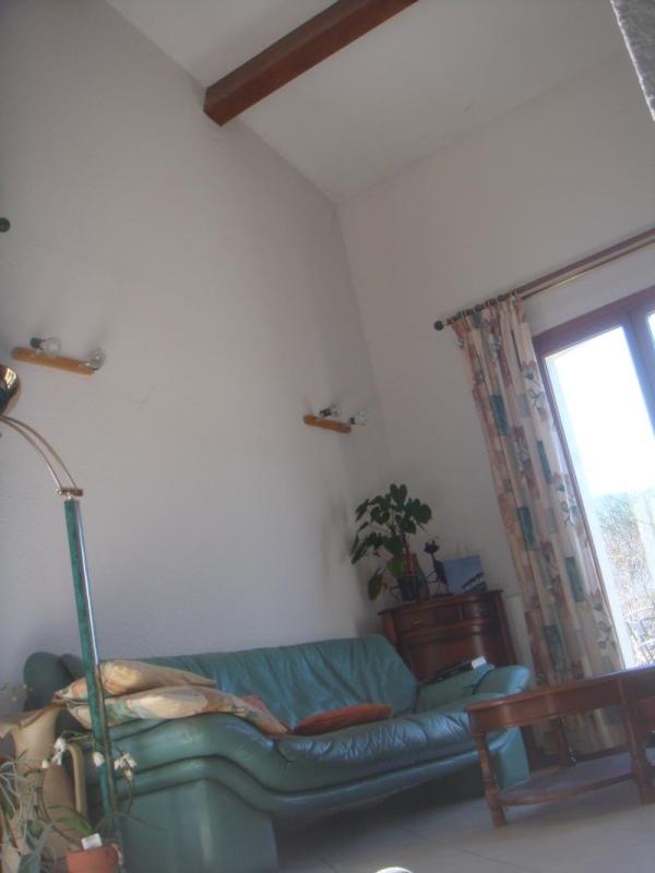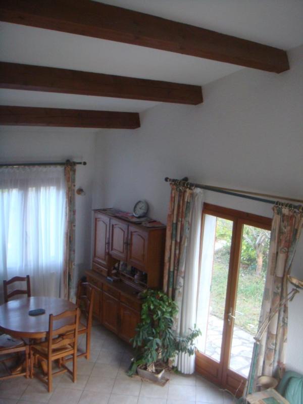 - un vaste espace salon/séjour avec un insert ( vous pouvez aussi utiliser le chauffage central au gaz de ville) et des poutres apparentes
