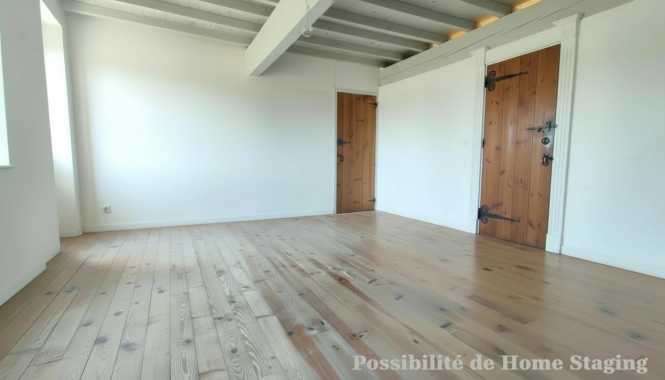 1 grande cuisine (sol, murs jointés et plafond fini pour la vente selon désirs acquéreurs), escalier également selon souhaits et négociation.