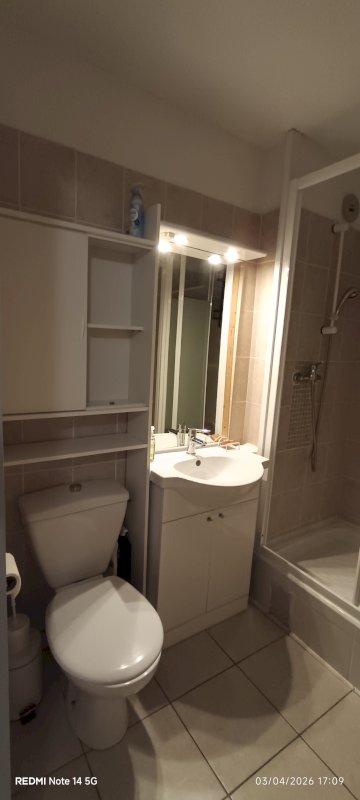 ll se compose d'une entrée avec trés grand placard, d’une cuisine équipée ouverte sur une pièce de vie lumineuse, d'une loggia de 6,50 m² donnant accès sur un jardinet privatif de 8m² avec vue sur la piscine. il offre également une chambre et une salle d’eau avec toilette.